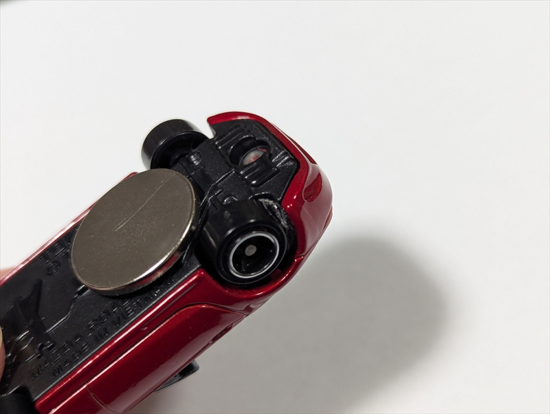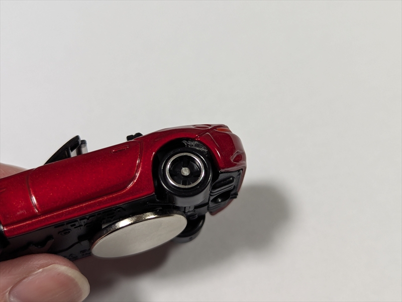 (当初はプレート裏側にも磁石を付けていましたが、ミニカー裏側だけで問題なさそうだったので現在は外して使用しています)