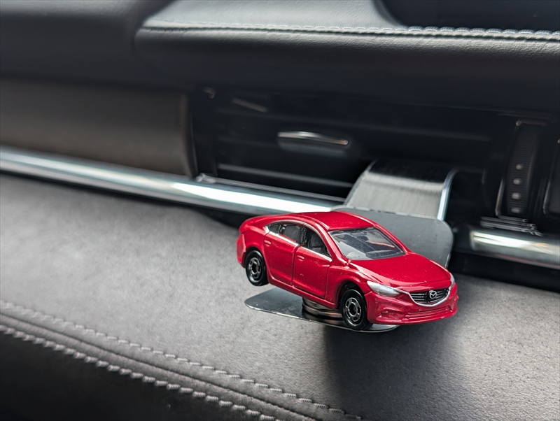 ミニカーの向きも簡単に変えられるし、お気に入りの複数のミニカーを日替わりで飾っても楽しそうですね。私は愛車と一緒に絶景を写真に収められないようなタイミングで持ち出してトミカと一緒に撮るなんていうのも出来て良いかなと想像しています。